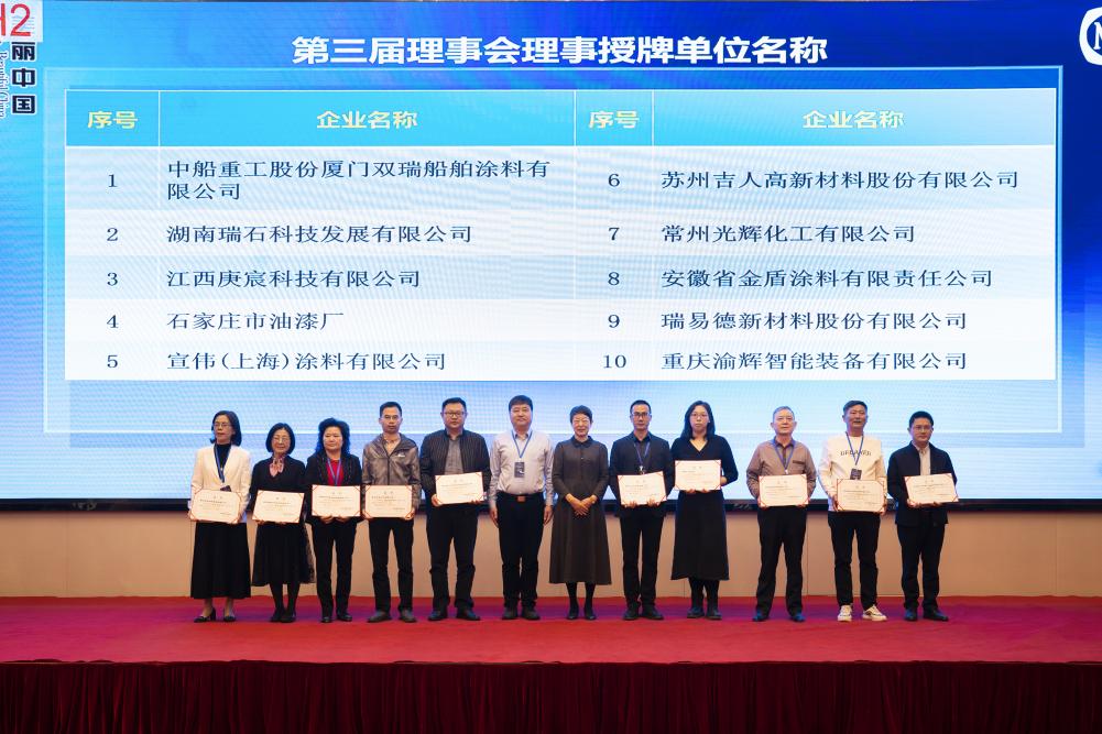 best365中国官方网站孙莲英会长首先为第三届理事会理事长单位海洋化工研究院有限公司、第三届理事会理事长王波颁发证书,紧接着,由孙莲英会长与王波理事长为到场的各副理事长单位、理事单位分别颁发证书。孙莲英会长表示,希望第三届理事会能带领中国防腐涂料企业在绿色、高质量发展道路上再上新台阶。