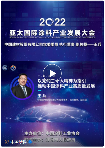 大会期间,中国建材股份有限公司党委委员/执行董事/副总裁王兵带来《以党的二十大精神为指引推动中国涂料产业高质量发展》的精彩演讲。他表示,2022亚太国际涂料产业发展大会召开的节点十分关键。