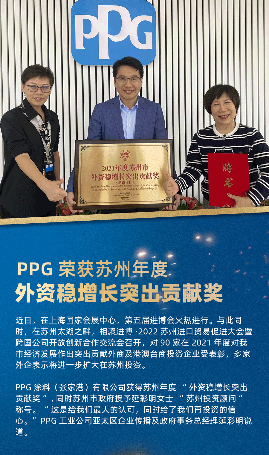 喜讯|PPG荣获苏州年度“外资稳增长突出贡献奖”