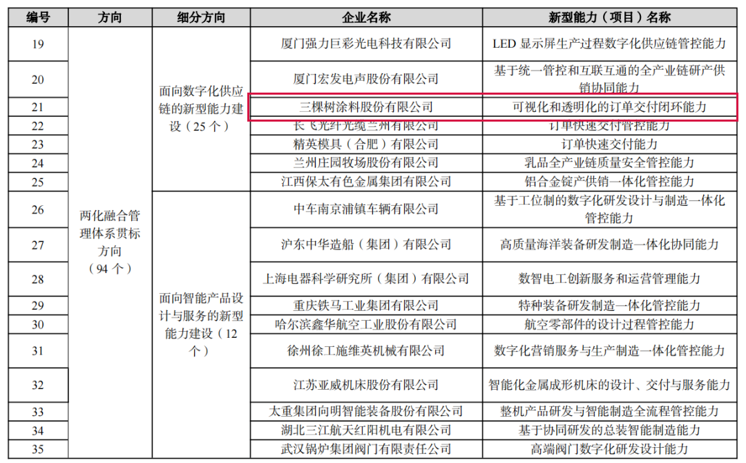 近日,国家工信部官网公示了“2022年新一代信息技术与制造业融合发展试点示范名单”,三棵树涂料股份有限公司凭借数字化供应链的可视化和透明化的订单交付闭环能力入选。