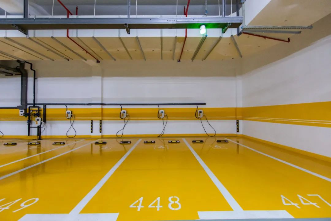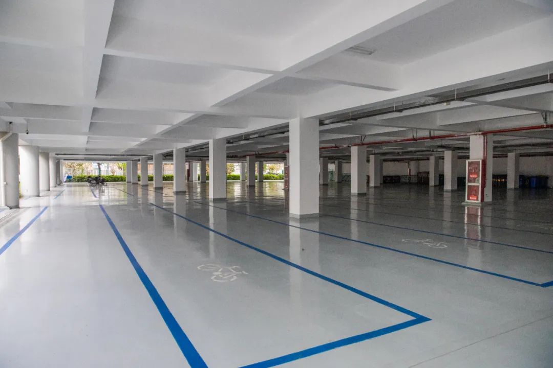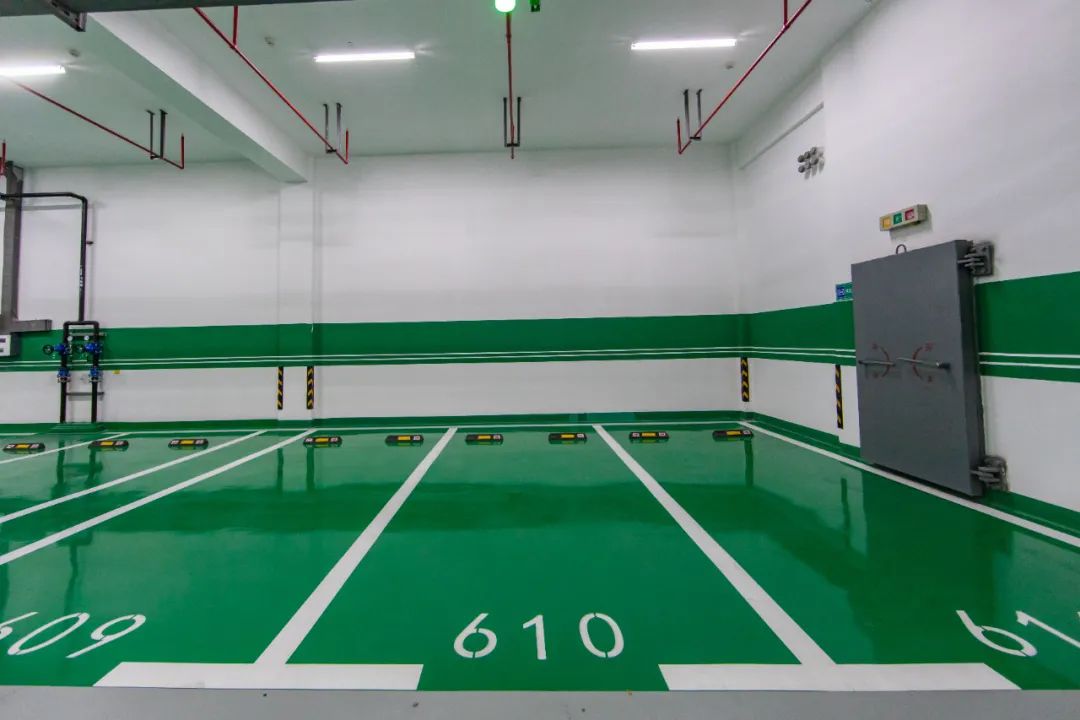 考虑到行车道走车频繁,对地坪的耐磨性及强度要求相对较高;为保证行人安全和降低行车噪音,且具备一定的防滑效果,“传化漆”品牌为临平体育中心地下车库铺设耐磨防滑的环氧地坪涂料,设计厚度1~2mm。
