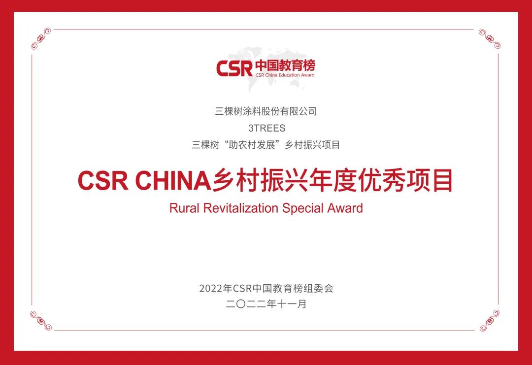 三棵树“助农村发展”乡村振兴项目荣获CSR CHINA乡村振兴年度优秀项目