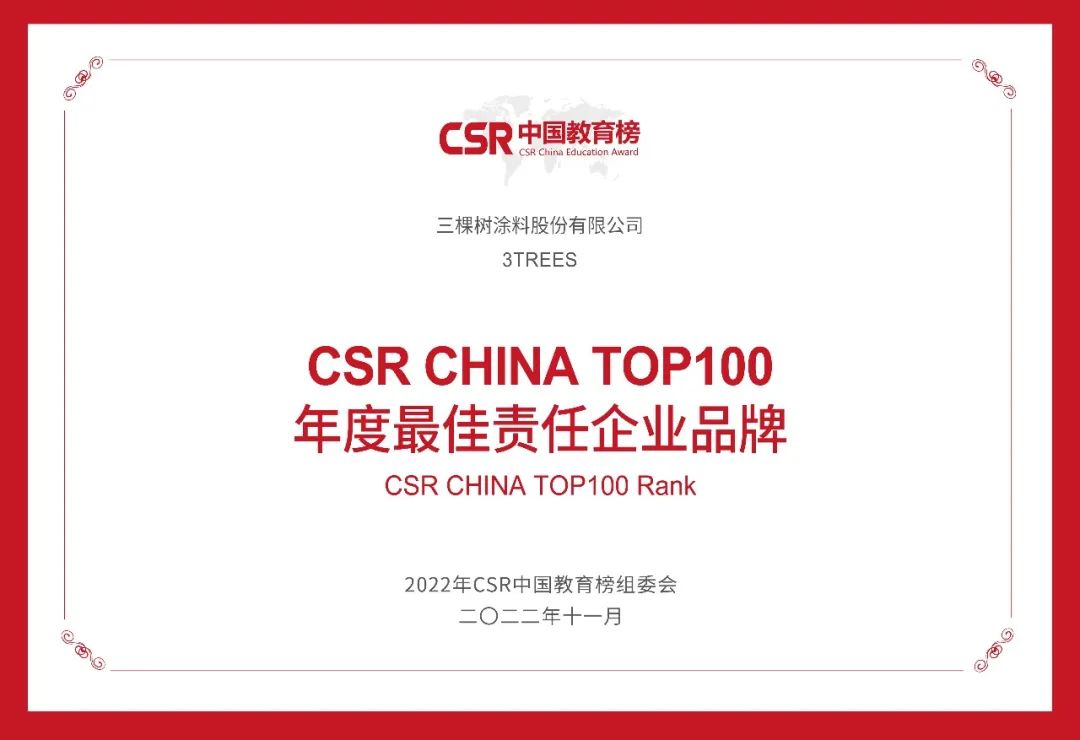三棵树涂料股份有限公司荣膺“CSR CHINA TOP100 年度最佳责任企业品牌”称号