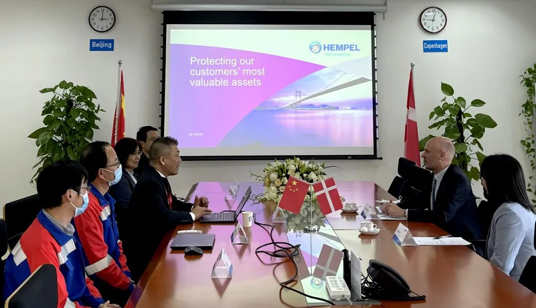 海虹老人亚太区基础设施业务副总裁古志军先生向总领事Søren Bindesbøll先生一行介绍了海虹老人集团的历史以及在中国的发展历程。在中国,海虹老人高品质的涂料解决方案为中国第一高楼上海中心大厦、中国第一座大型悬索桥虎门大桥、年旅客吞吐量全球第二的北京首都国际机场T3航站楼等大型地标项目保驾护航,给总领事Søren Bindesbøll先生留下了深刻的印象。