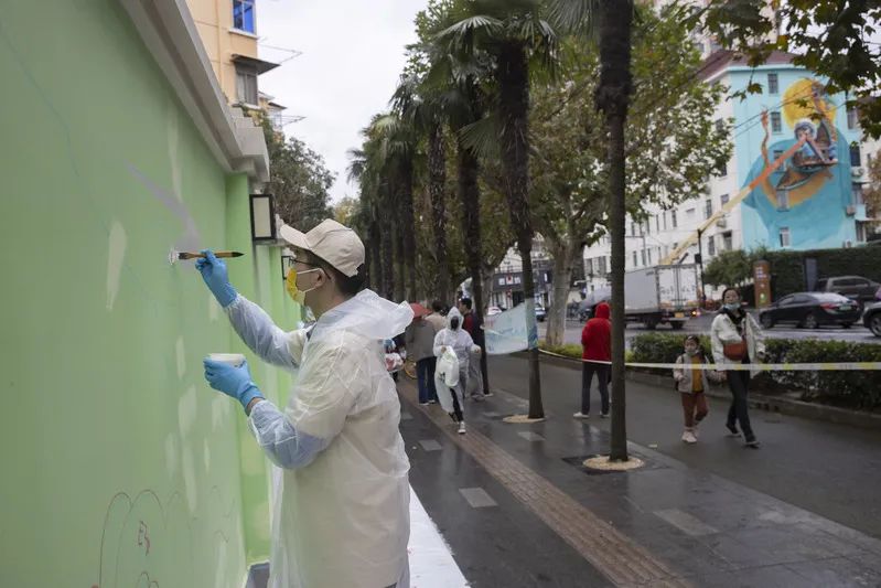 由于受疫情影响,今年“为爱上色”的项目大多延期至6月才陆续启动,艺术家们克服了重重困难到各地进行创作。一位从澳门来上海的艺术家,每次往返两地都要隔离一段时间,但她却没有放弃参与这个项目。