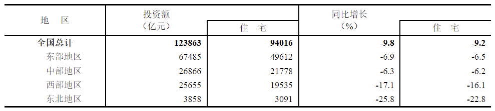 1—11月份,全国房地产开发投资123863亿元,同比下降9.8%;其中,住宅投资94016亿元,下降9.2%。