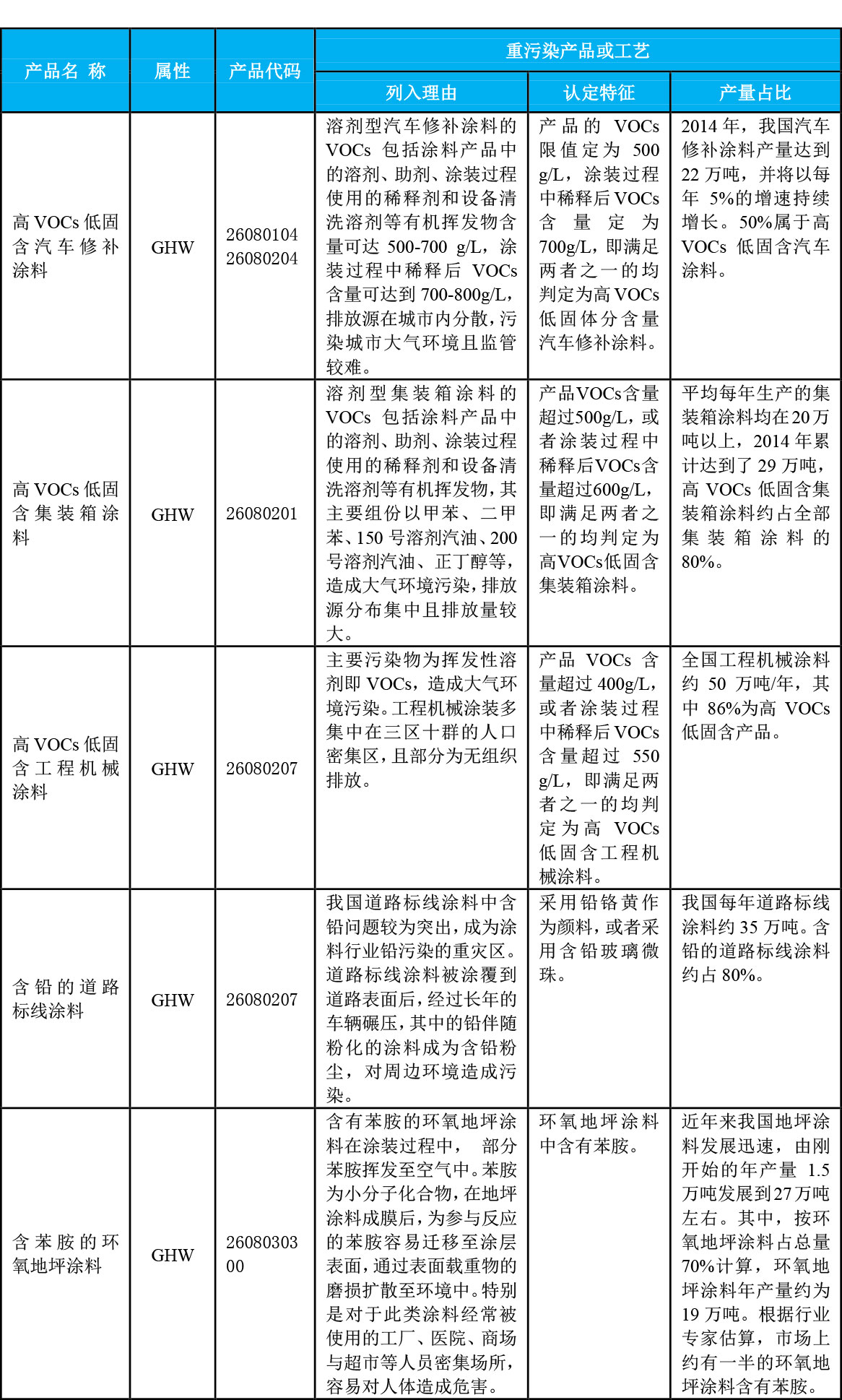“高污染、高环境风险”产品名录(2017年版)(涂料、颜料相关部分)
