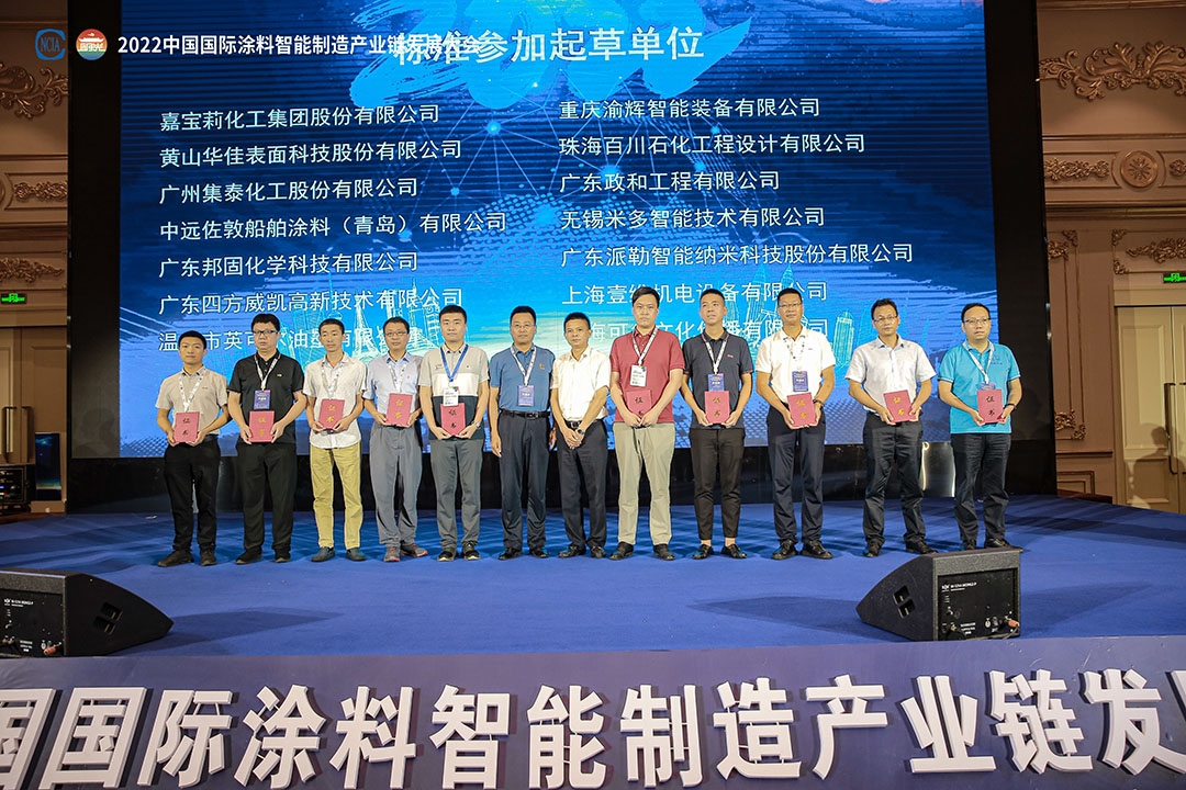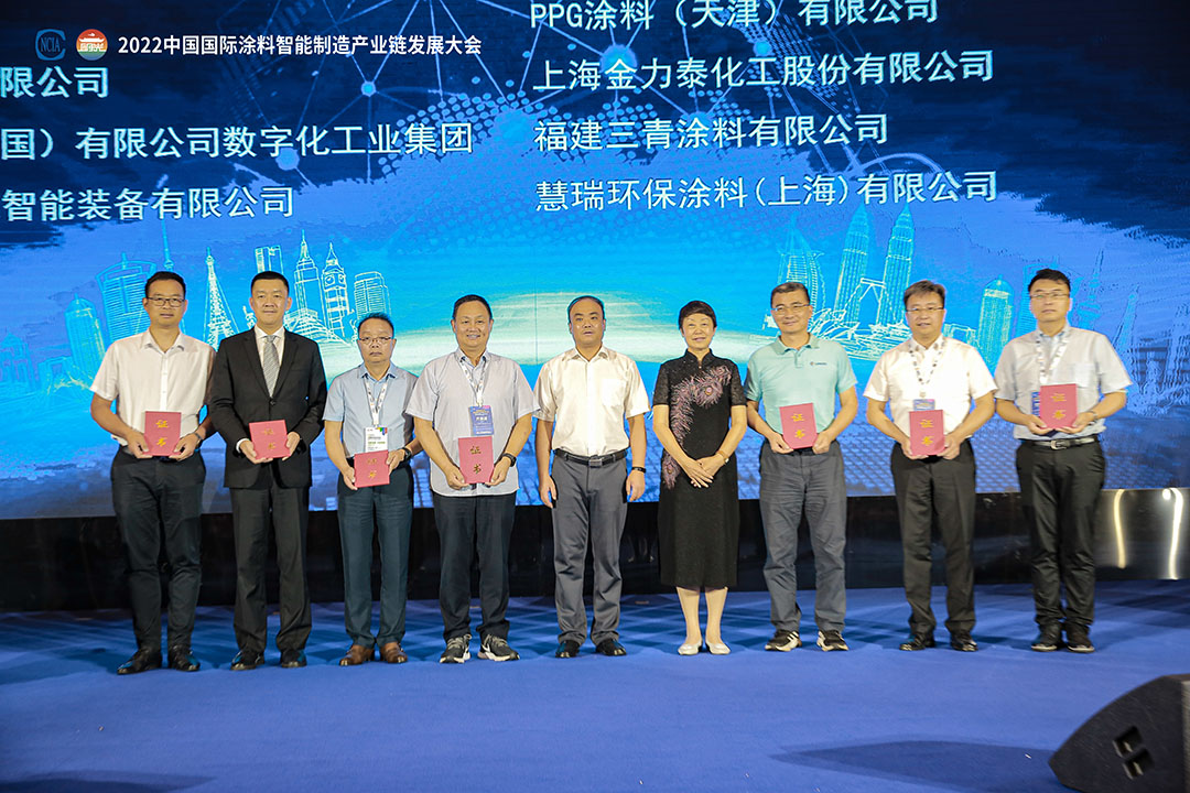 best365中国官方网站孙莲英会长和明光市人民政府副市长刘静为《涂料行业智能工厂通用技术要求》、《涂料行业智能工厂评价规范》主要起草单位珠海市长陆工业自动控制系统股份有限公司,暨南大学,立邦投资有限公司,西门子(中国)有限公司数字化工业集团,江苏汤姆森智能装备有限公司,广东金宝力化工科技装备股份有限公司,PPG涂料(天津)有限公司,上海金力泰化工股份有限公司,福建三青涂料有限公司,慧瑞环保涂料(上海)有限公司颁发证书。
