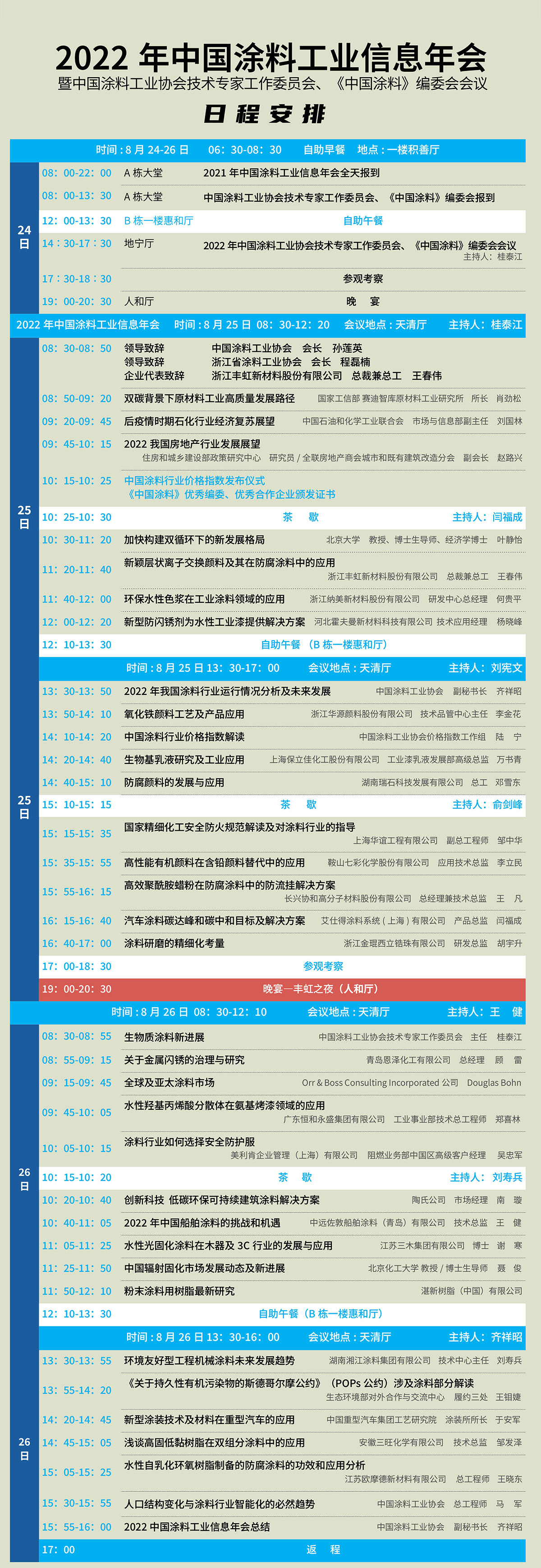 8月24-26日·浙江安吉 | 2022年中国涂料工业信息年会暨best365中国官方网站技术专家工作委员会、《中国涂料》编委会会议