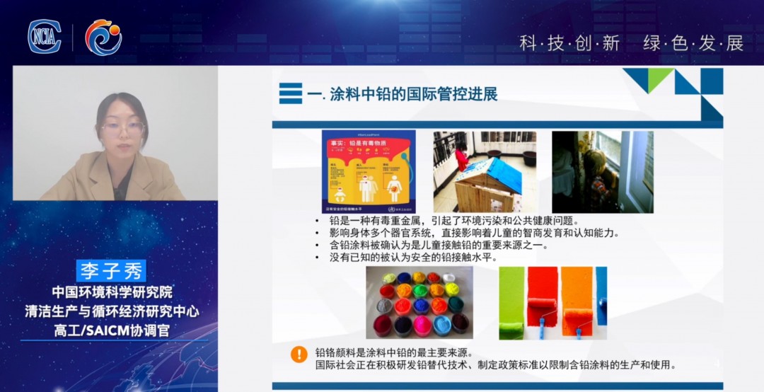 李子秀在演讲中主要介绍了涂料中铅的国际管控进展、主要国家涂料中铅的管控政策与标准以及联合国涂料行业铅替代试点项目。