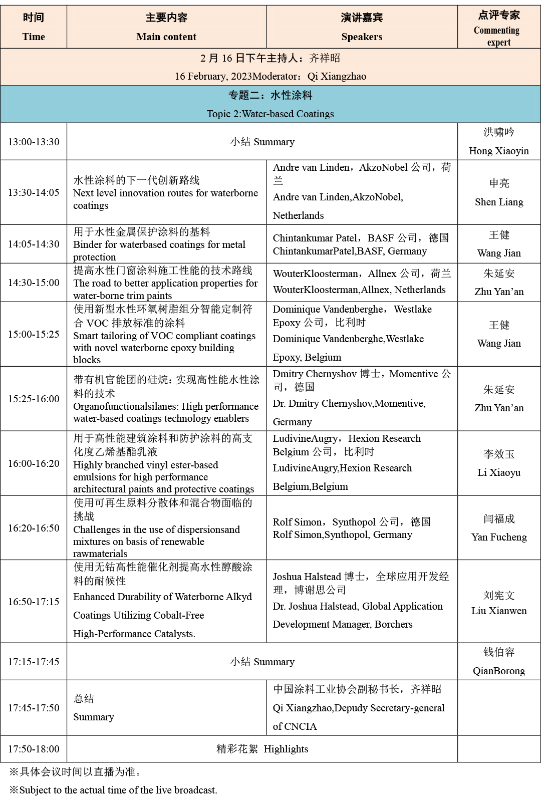 2月16日·网络直播|欧洲涂料学院(中国)第五届国际涂料前沿技术研修会