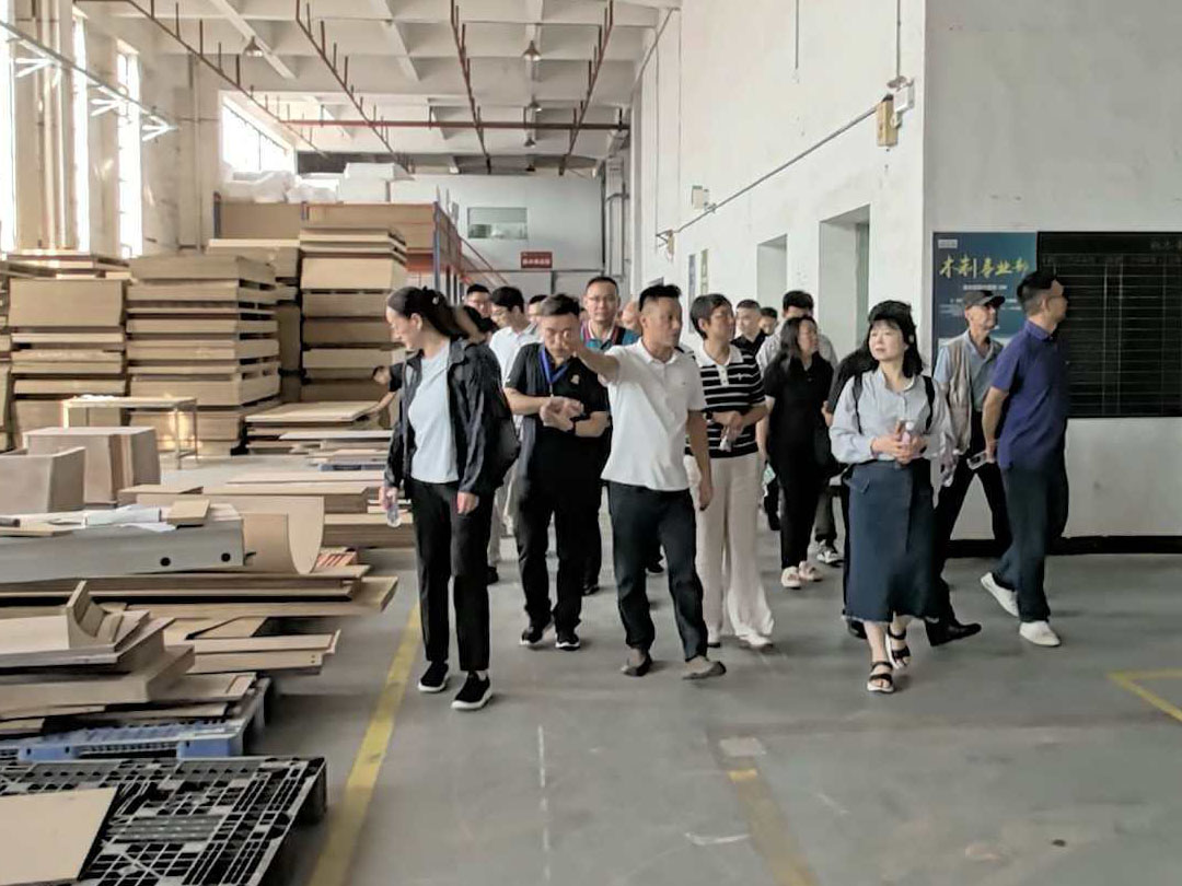 9月18日,与会代表实地考察迪欧家具集团木制家具涂装产线,迪欧分享了水性涂料涂装在实木和板材家具中的应用,获益匪浅。