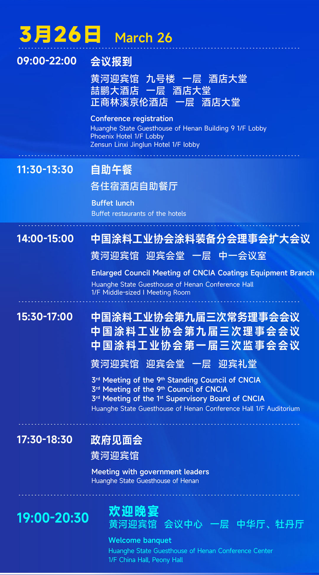 1、河南省黄河迎宾馆 9号楼(维也纳酒店、吾同酒店的住宿参会代表,同在9号楼报到)