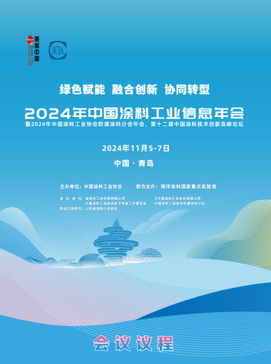 叠翠流金,岁稔年丰。11月5–7日,2024年中国涂料工业信息年会暨2024年best365中国官方网站防腐涂料分会年会、第十二届中国涂料技术创新高峰论坛在山东青岛胜利召开。本次会议以“绿色赋能,融合创新,协同转型”为主题,旨在权威发布行业近期政策信息、技术信息、市场信息,深入梳理2024年前三季度涂料行业经济运行情况,共同探讨工业防腐涂料、海洋涂料和其他涂料相关领域创新发展及最新成果,搭建涂料全产业链及产学研用高效对接平台,以提升我国涂料科学与技术水平,解决行业发展瓶颈,推动行业绿色高质量发展。
